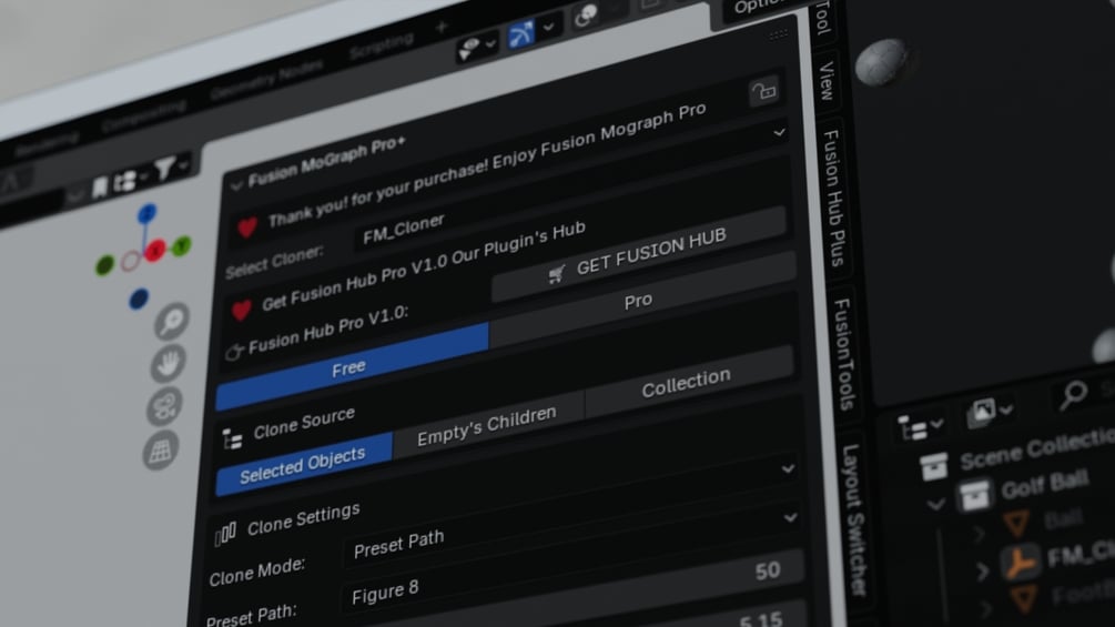 Fusion MoGraph Pro+ brings Cinema 4D style MoGraph features to Blender. Create clones in grids, circles, paths & volumes, apply effectors, presets, physics, and force fields – perfect for motion graphics and animation.