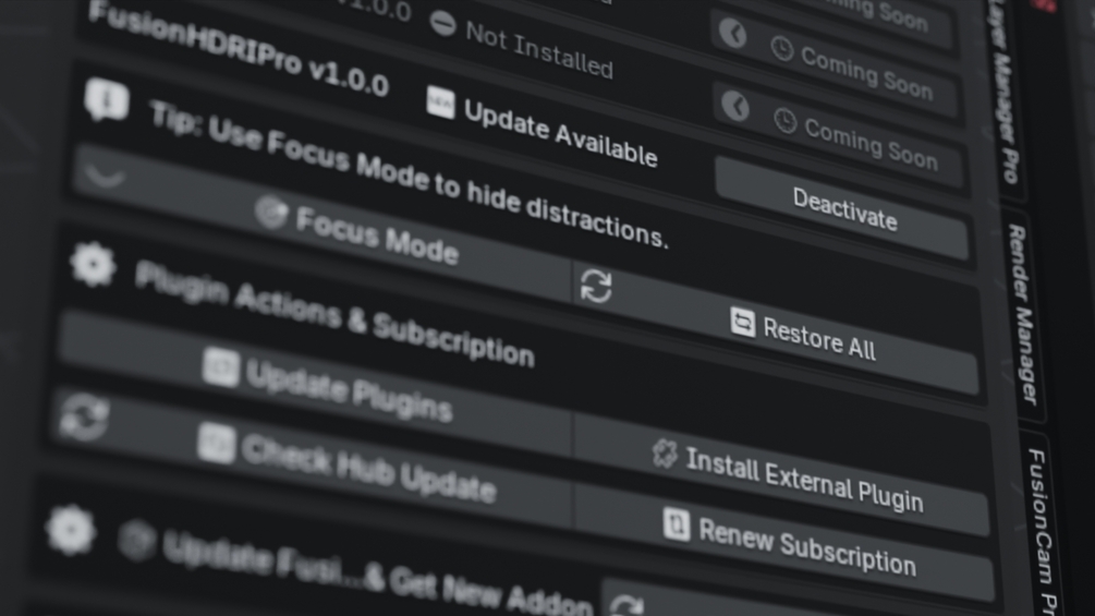 Supercharge your creativity with Fusion Hub — a complete toolkit for artists, designers, and animators. From powerful rendering and lighting to advanced FX, cameras, and scene tools — everything you need in one place.